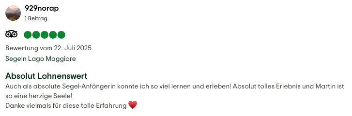 Seit 2011 beruflich unter Segel mit ‹Favore› auf dem Lago Maggiore, häufig in Kombination mit Weiterbildungsinhalten zu Leadership und Teamentwicklung (favore.online).