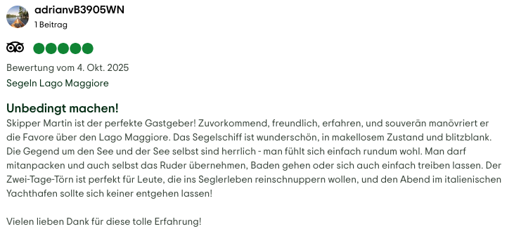Segelspass inklusive – spüren Sie den Wind des Lago Maggiore in den Haaren!
